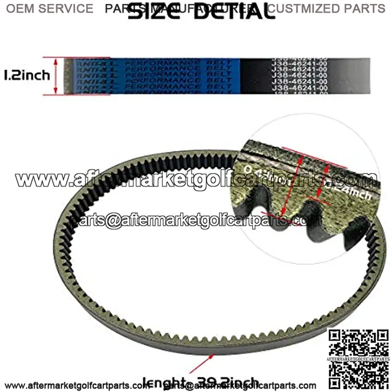 OEM Reference NumbersYamaha golf cart parts Numbers: J38-46241-00, BLT-0024, J55-G6241-02-00, J55-G6241-01-00, J55-G6241-00-00. Please check the OEM # from your old belt before ordering.