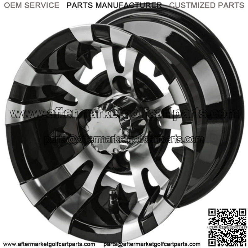 10″ Warlock Black & Machined Golf Cart Wheel Center Cap included Wheel Dimensions: 10X7 with 4×4 bolt pattern and 3+4 offset Lug Nuts sold separately