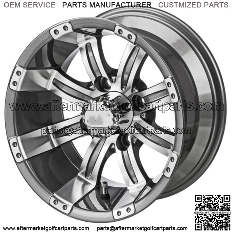 12″ Casino Gun Metal Gray & Machined Golf Cart Wheel Center Cap included Wheel Dimensions: 12X7 with 4×4 bolt pattern and 3+4 offset Lug Nuts sold separately