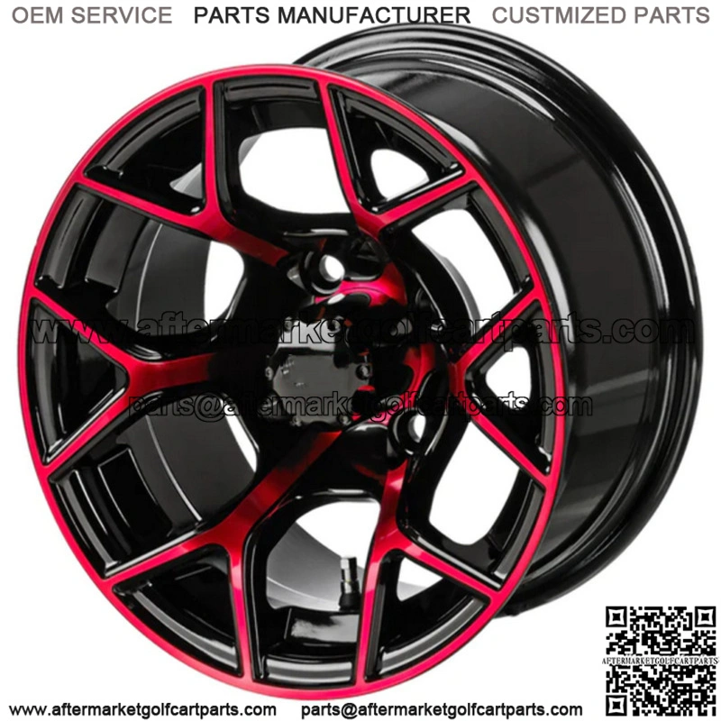 12×7 Ninja Cross Black & Red Golf Cart Wheel 3:4 Offset Center Cap included Wheel Dimensions: 12X7 with 4×4 bolt pattern and 3:4 offset Lug Nuts sold separately
