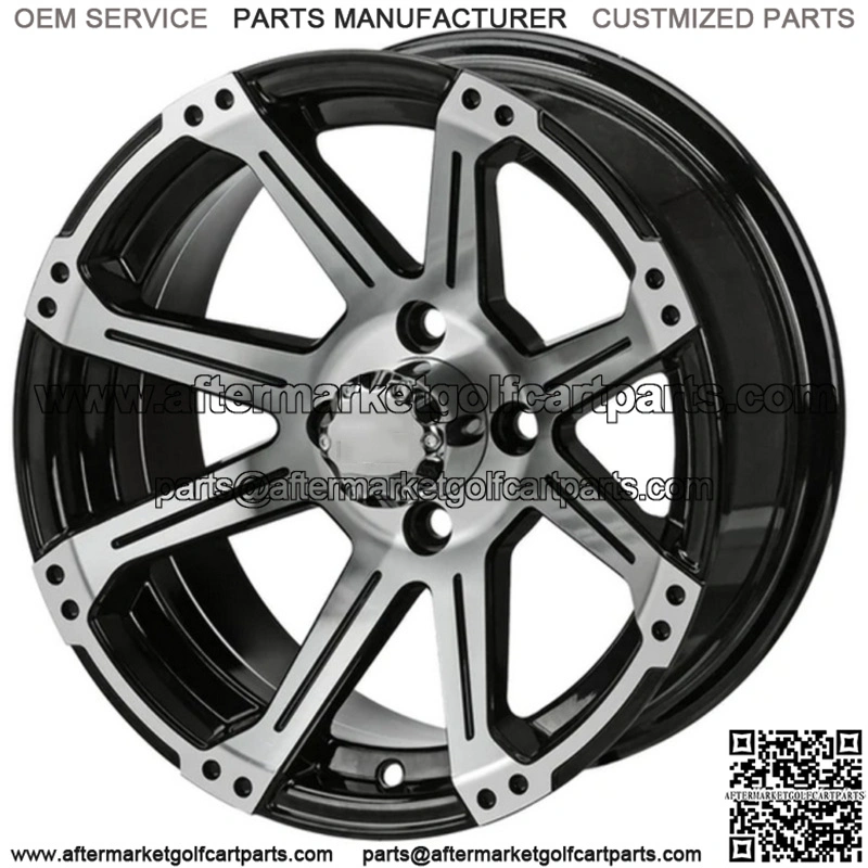 14×7 Rampage Black & Machined Golf Cart Wheel 3:4 Offset Center Cap included Wheel Dimensions: 14X7 with 4×4 bolt pattern and 3+4 offset Lug Nuts sold separately