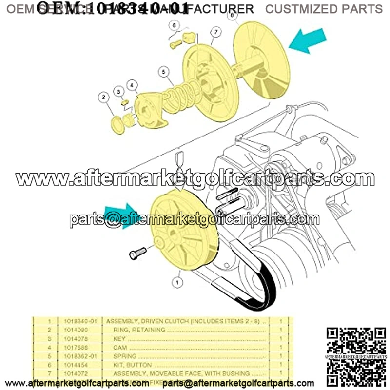 Application: Drive clutch assembly kit Fits 4-Cycle gas Club Car DS 1997-2015, Club Car Precedent 2004-2015 golf cart with Kawasaki FE290 FE350 FE400 engines