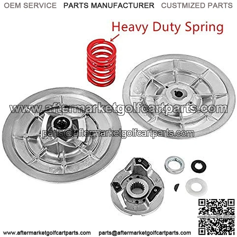 This Rear Cluth Kit Includes: Fixed and sliding sheaves, Heavy Duty spring, spring seat, ramp shoes, woodruff key and spacer, plastic washer.