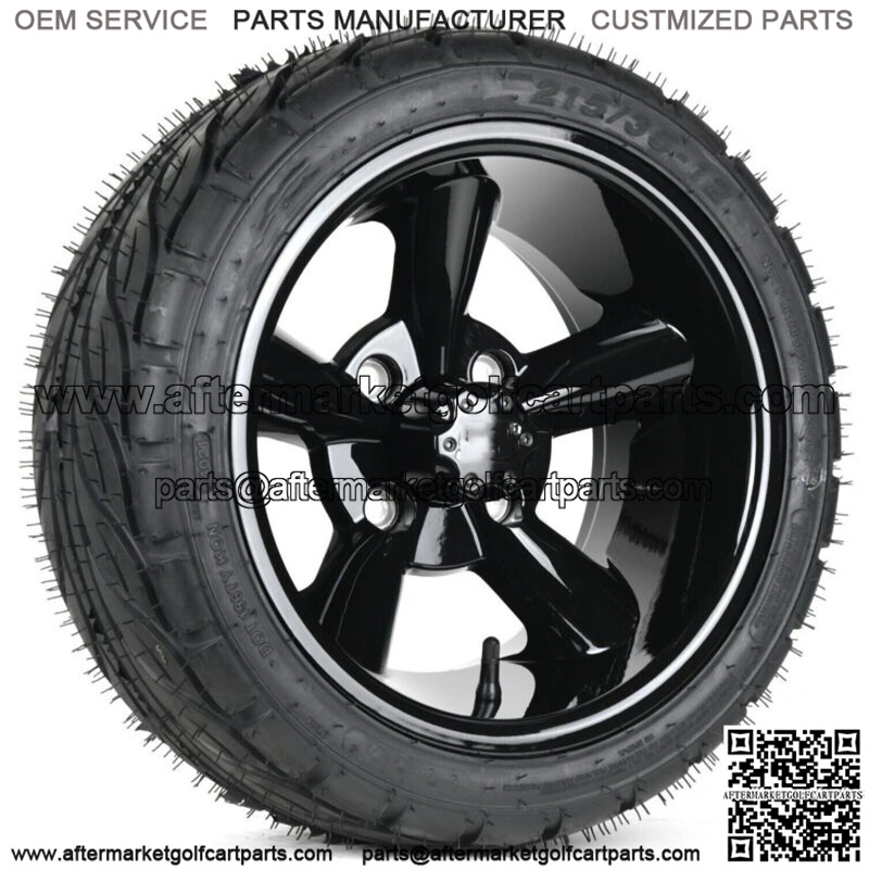 Set of 4 12″ Gloss Black 5 Spoke Golf Cart Wheels & 215/35-12 Tires DOT