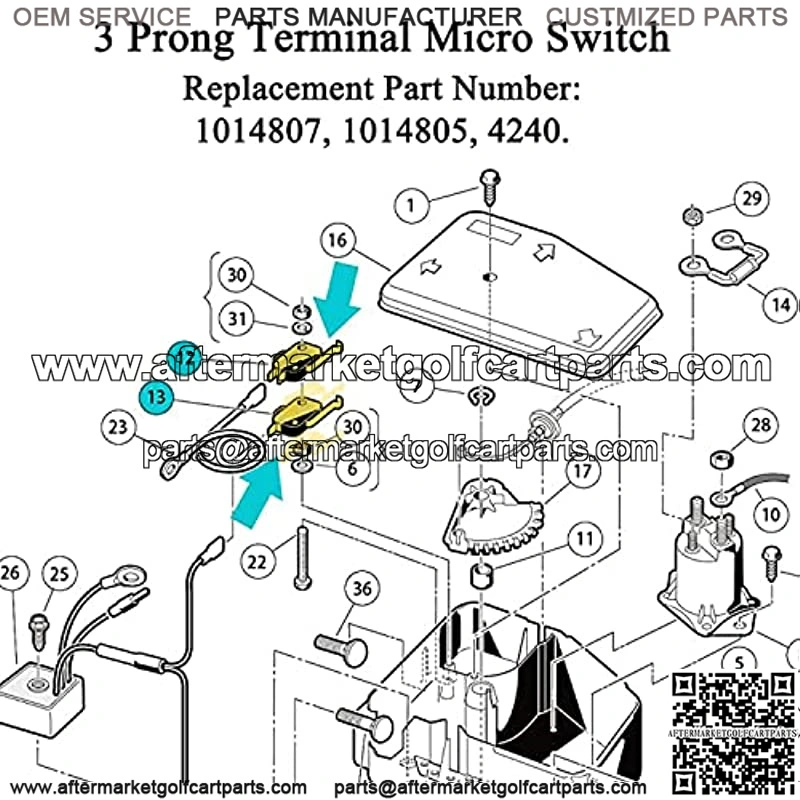 Golf Cart 3 prong terminal micro switch fit for Golf Cart Club Car DS Precedent (1982-up) and Tempo (2018-up).