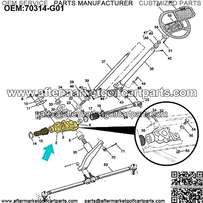 Steering Gear Box Assembly for 1994-2000 EZGO TXT Medalist Express Shuttle Refresher Workhorse ST Series Golf Cart, OEM# 70314-G01 70314-G02 70723-G02
