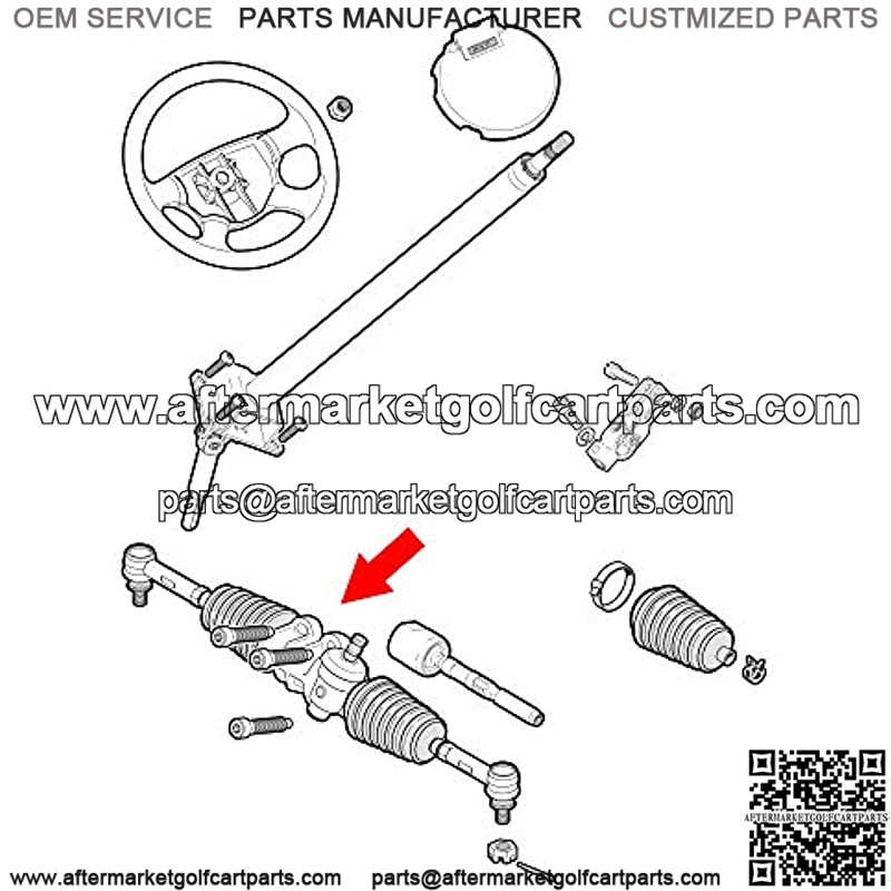 Complete steering rack assembly, includes inner steering rod and outer rod end Fits EZGO RXV 2008-Up Gas & Electric Golf Carts Direct Replace Part Number: 601500, 618329, 601580, 851-201, 603865, 604614 Used with axle-mounted steering systems Please confirm your original part number can match up with one of the part numbers above