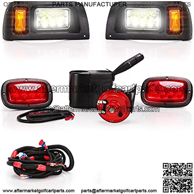 Universal Golf Cart 12 Volt LED Headlight and Tail Light Kit for Club Car DS Carts Gas & Electric Models,with upgrade headlights, amber turn signals, brake lights