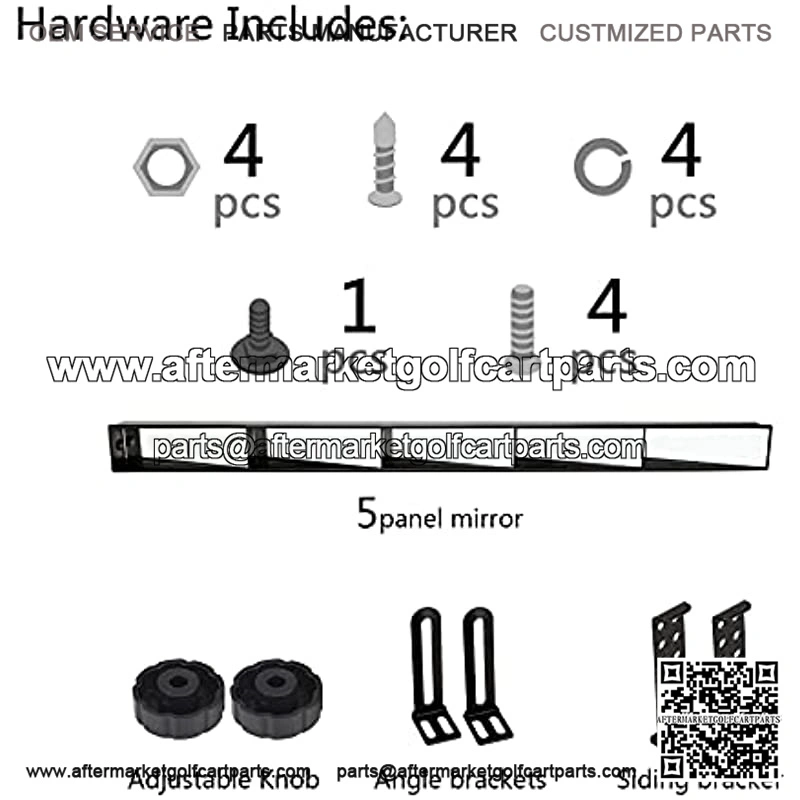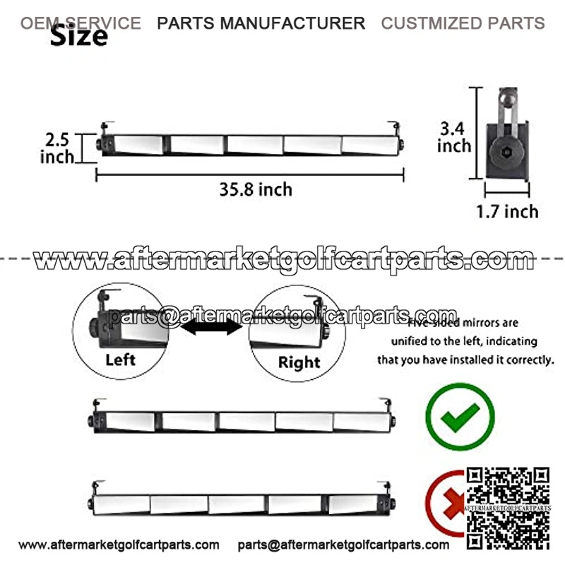 Universal interior rear view 5 panel mirror for golf cart EZGO, Club Car, Yamaha, compatible larger sedans, SUVs, vans and trucks, etc