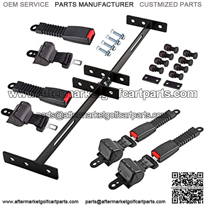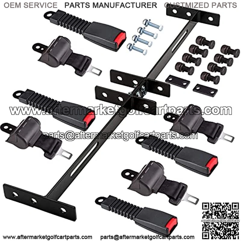 Universal 4 passenger retractable golf cart seat belt kit fit for EZGO Club Car and YAMAHA. TXT needs to drill holes in the backrest bracket, otherwise it is not suitable.This bracket will not fit for 2 Passenger Club Car Precedent, Yamaha G29 Drive and EZGO RXV.
