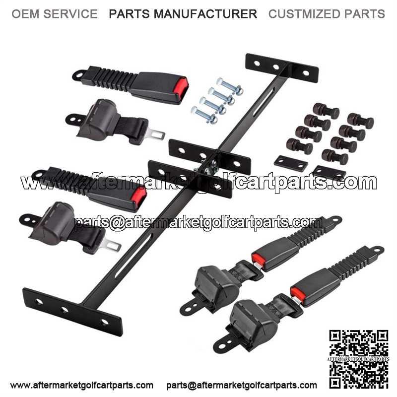 Universal Golf Cart 4 passenger Seat Belts and Bracket for EZGO / Yamaha / Club Car, bracket size: 35″ x 6.9″, retractable belt length: 42″.One bracket accommodates four belts, designed to work on front and rear seats without multiple brackets. Mounted on between the front and rear seat, keep the kids and passengers from falling out accidentally or impacting each other on a bumpy road while the vehicle is in motion.Kit includes: 1* bracket, 4* seat belts with buckles and all necessary installation screws gasket
