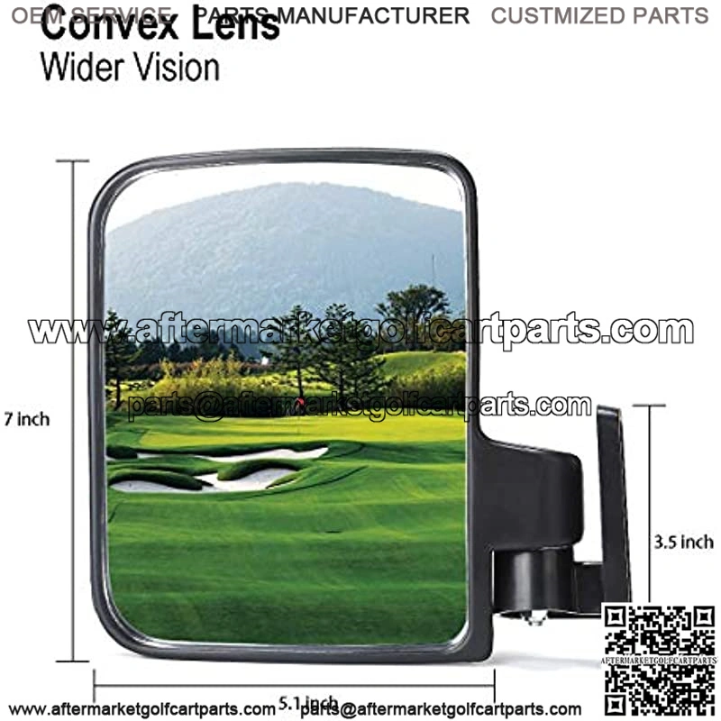 Convex Lens Design: golf cart side mirrors adopts with convex lens design offers you a super wider vision, clearly catch sight of the rear upcoming vehicles.The best choice for golfer.