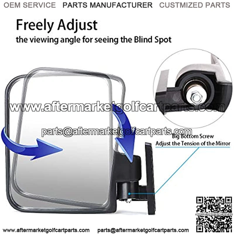 180Flexible Adjustment: Our golf cart side mirrors with embedded adjustable joint, easy to adjust up & down or sideways for the best angle of the viewing that you want, and it can be folded, very convenient to use.