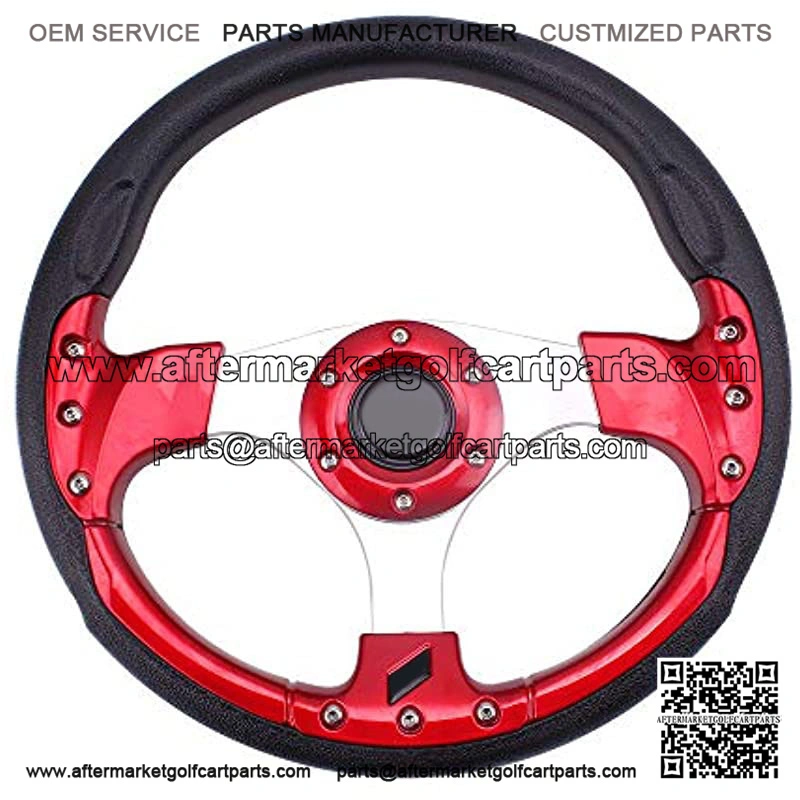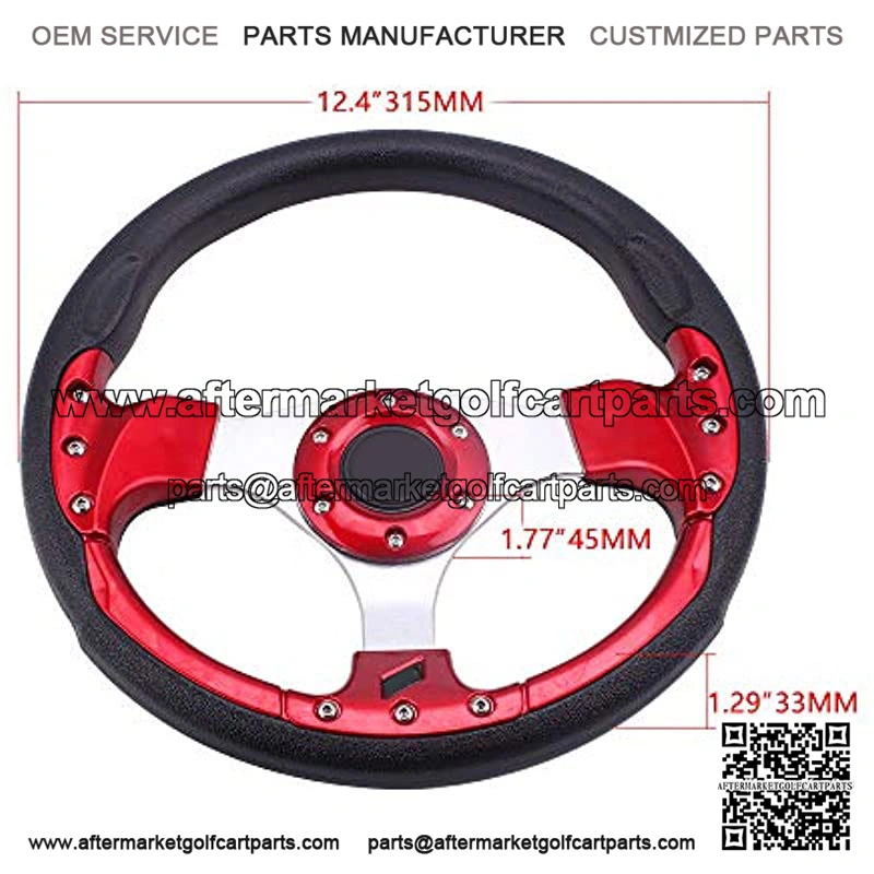 Universal Racing/Golf Cart Steering Wheel 12.5/320mm 15 Bolts Grip Vinyl Leather & Aluminum with Horn Button for Car& for Club Car DS and Club Car Precedent EZGO Yamaha Golf Carts-Red