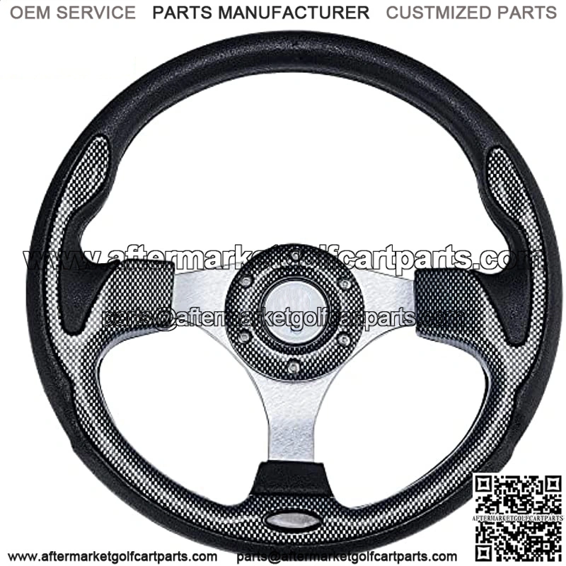 Universal Racing Steering Wheel for Golf Cart, EZGO Yamaha Club Car DS & Precedent , Aluminum with Horn Button for Car, 12.5/320mm 6 Bolts Grip Vinyl Leather, black & carbon fiber