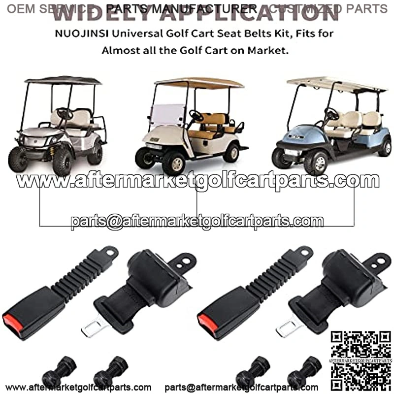 [Universal Golf Cart Seat Belts Kit]: retractable golf cart seat belts kit fits for almost all the golf carts on market: EZGO RXV&TXT, Club Car DS&Precedent, Yamaha Drive, Go Kart and UTV. It can be used for rear and front seat belt.