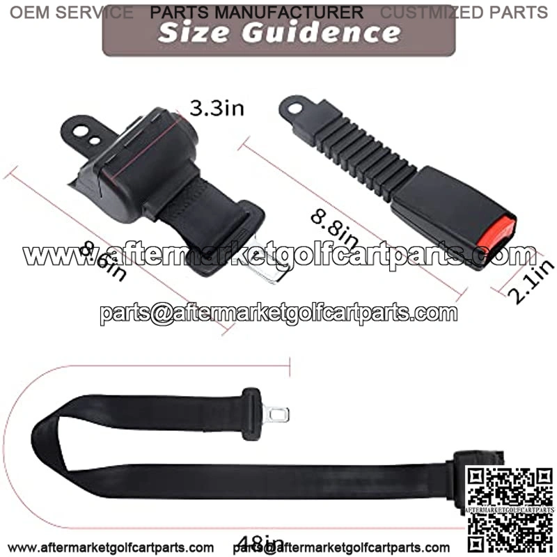 [Retractable Length Golf Cart Rear Seat Belt]: The retractable golf cart seat belts can retract 48 inch long which can fit most users well. It’s convenient and fast to adjust the length as you like.