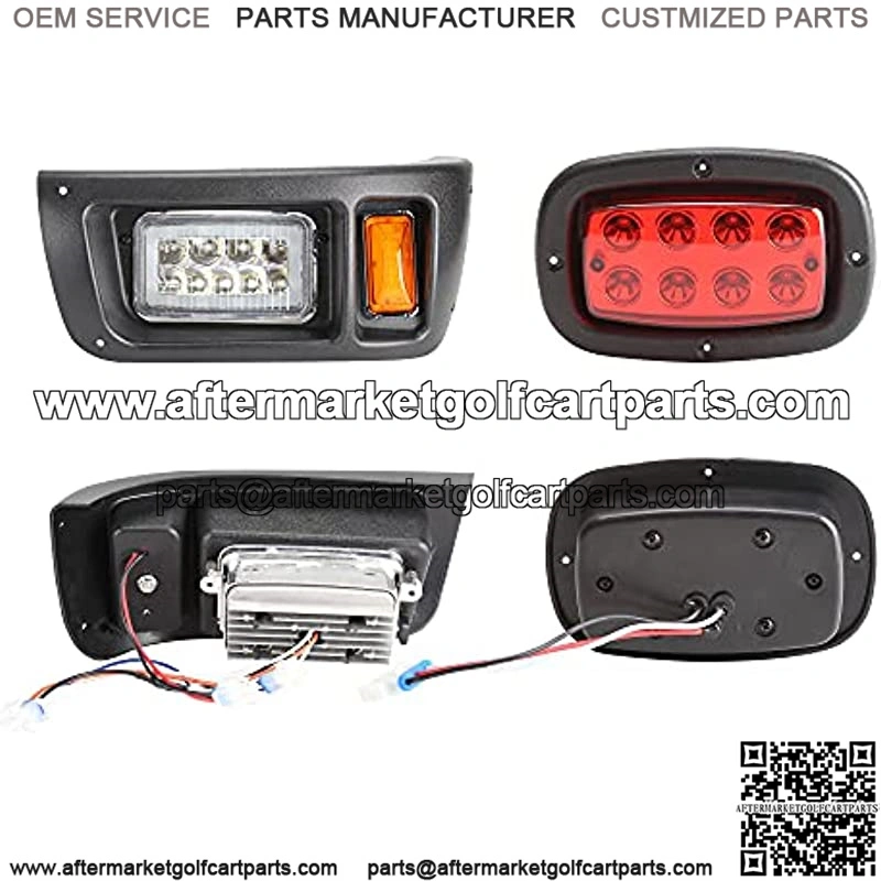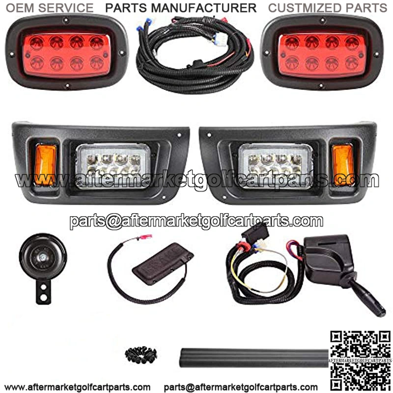 Golf cart deluxe LED kit for Club Car DS 1993-up gas & electric models, upgrade version includes low/high beam, daytime running lamp, turn signal light, brake lights, hazard light, horn function Input voltage 16V-80V, built-in DC converter and can connect to battery directly. If connect to 12V battery, the built-in DC converter needs to be disconnected to avoid voltage shortage New high and low beam function allows you to freely choose the intensity of the light in the day or night Kit includes: 2* LED front headlight, 2* LED taillight, 1* horn, 1* turn signal lever with headlight/horn switch, 1* steering column cover, 1* brake pad, 1* plug & play wiring harness, 1* screw set, 1* installation instructions Comes with detail instruction, it will takes about 2 hours to install. Offering 1-year limited warranty, please feel free to contact us for any assistance you might need