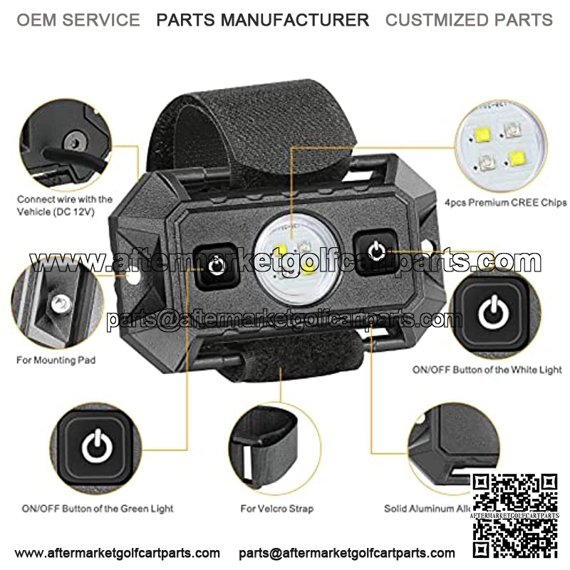 FEATURES: High Brightness, 2 light modes (white & green) for meeting different demands, built-in 4pcs premium CREE chip for quality performance, durable compact aluminum housing for excellent heat disation and waterproof, working voltage: 9V~30V (fits 12V/24V vehicles), lower power consumption, longer lifespan
