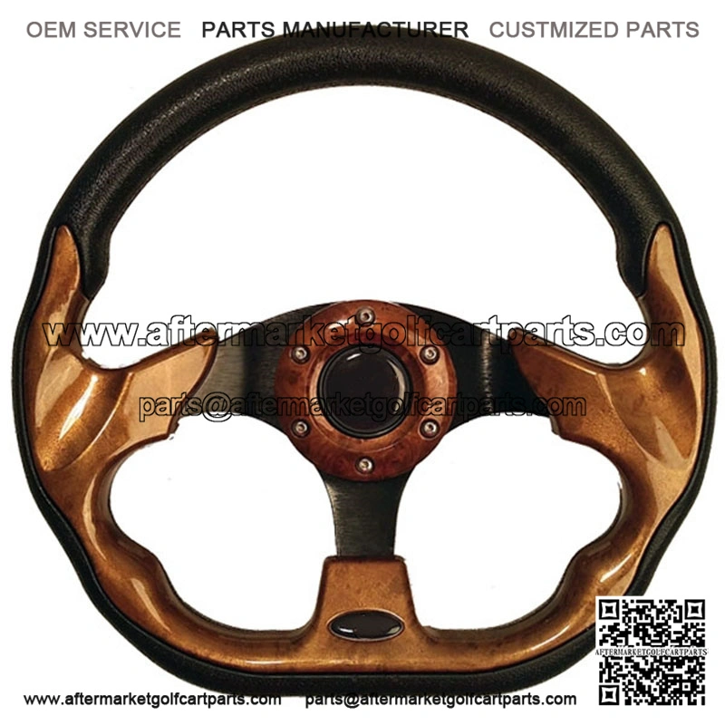 12.5″ Diameter Sport Steering Wheel Style: Color: Woodgrain Easy installation on EZGO, Club Car and Yamaha with Custom Adapter (sold separately). Note: Horn button is for aesthetic purposes only Add a Black Adapter (Optional – $29)