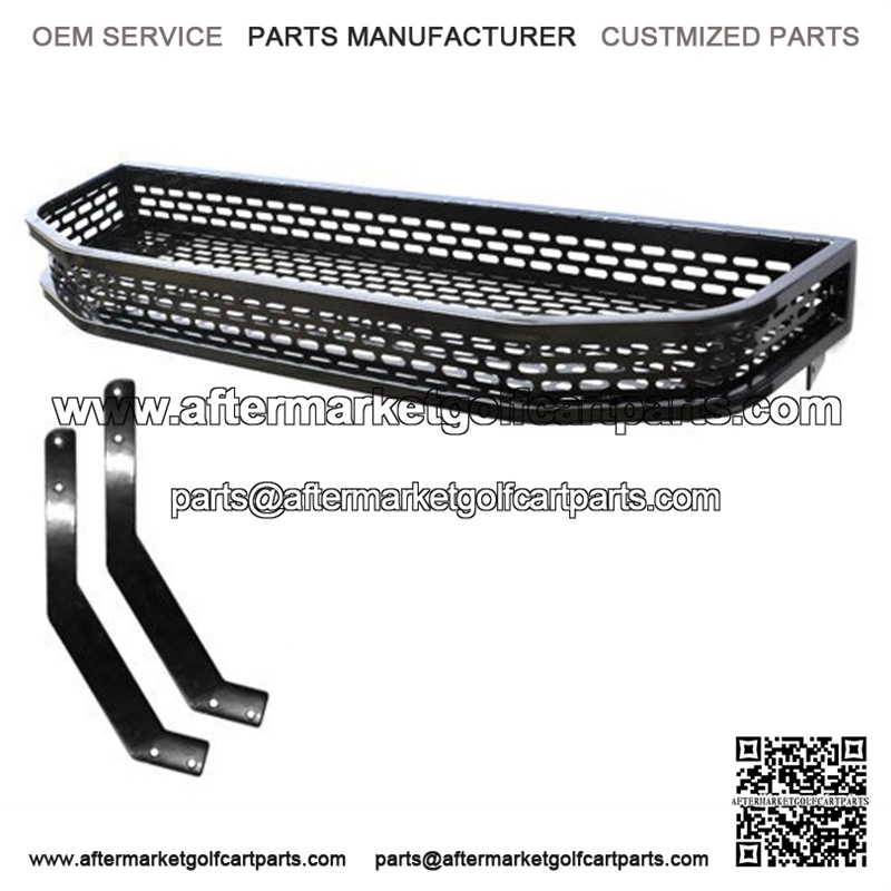 Beef up your front-end and carry extra stuff in style! This heavy duty front clays basket for your Yamaha Drive golf cart is made of corrugated steel and finished in a rugged black powder-coat.
