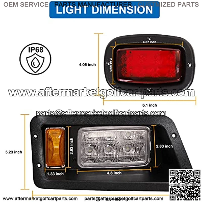 PackageYamaha Light Kit G14-G22 includes 2* LED headlights (left & right), 2* LED taillights(left & right), 1*switch, wiring harness, cutting template, installation instruction and hardware.
